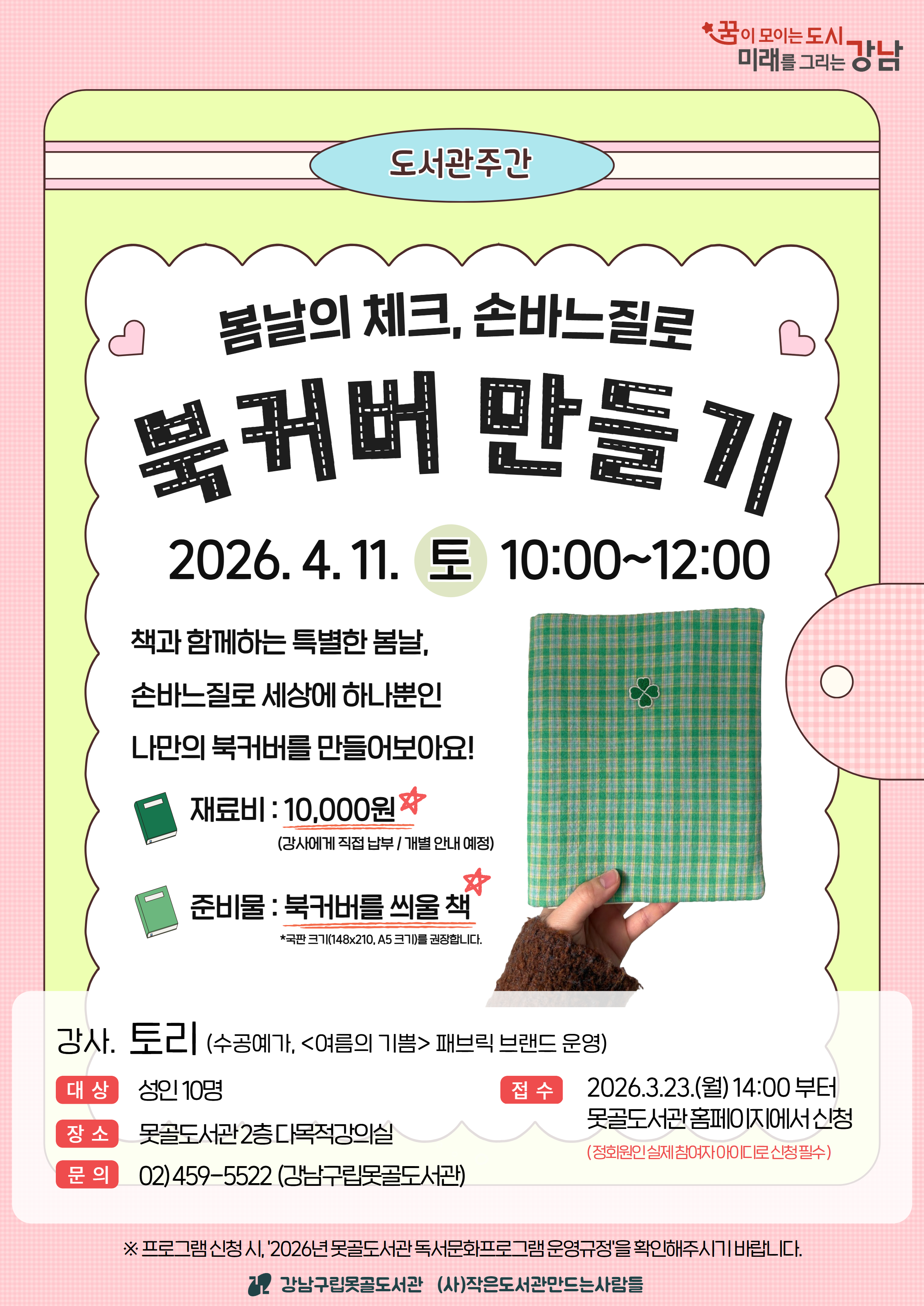 행사명 못골 [대면][도서관주간]봄날의 체크, 손바느질로 북커버 만들기