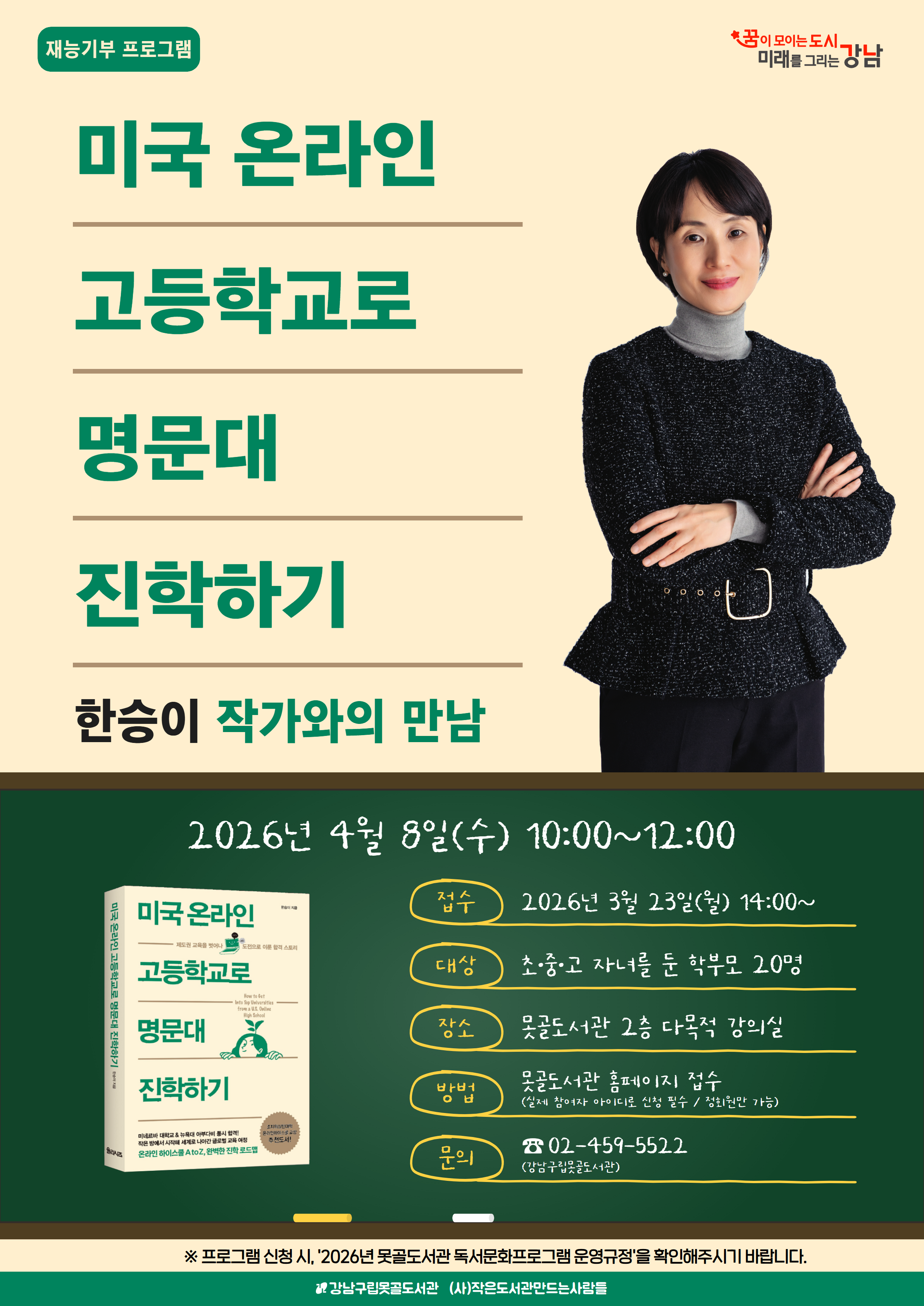 [대면][도서관주간][재능기부] 『미국 온라인 고등학교로 명문대 진학하기』 한승이 작가와의 만남