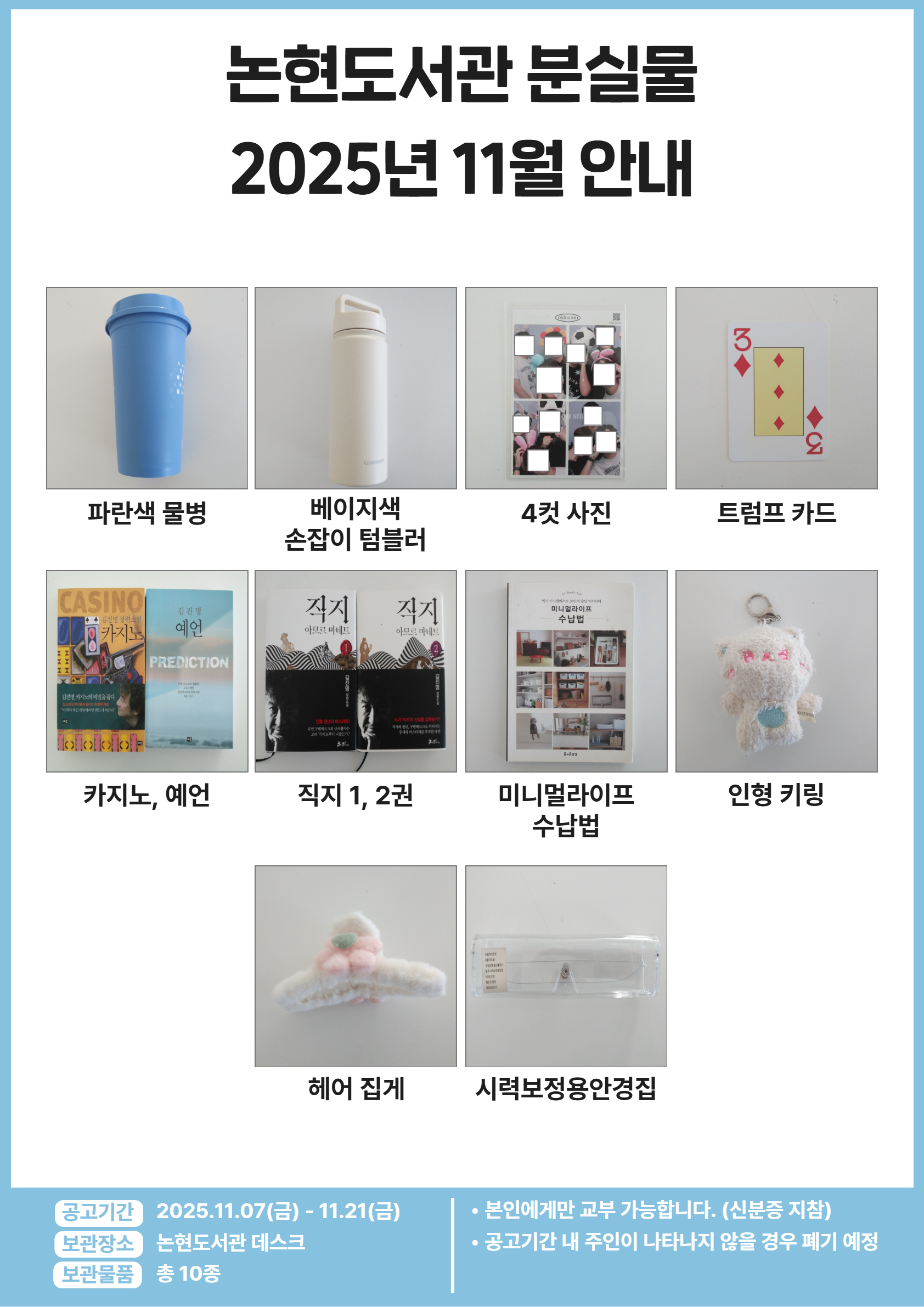 논현도서관 2025년 11월 분실물 안내드립니다.