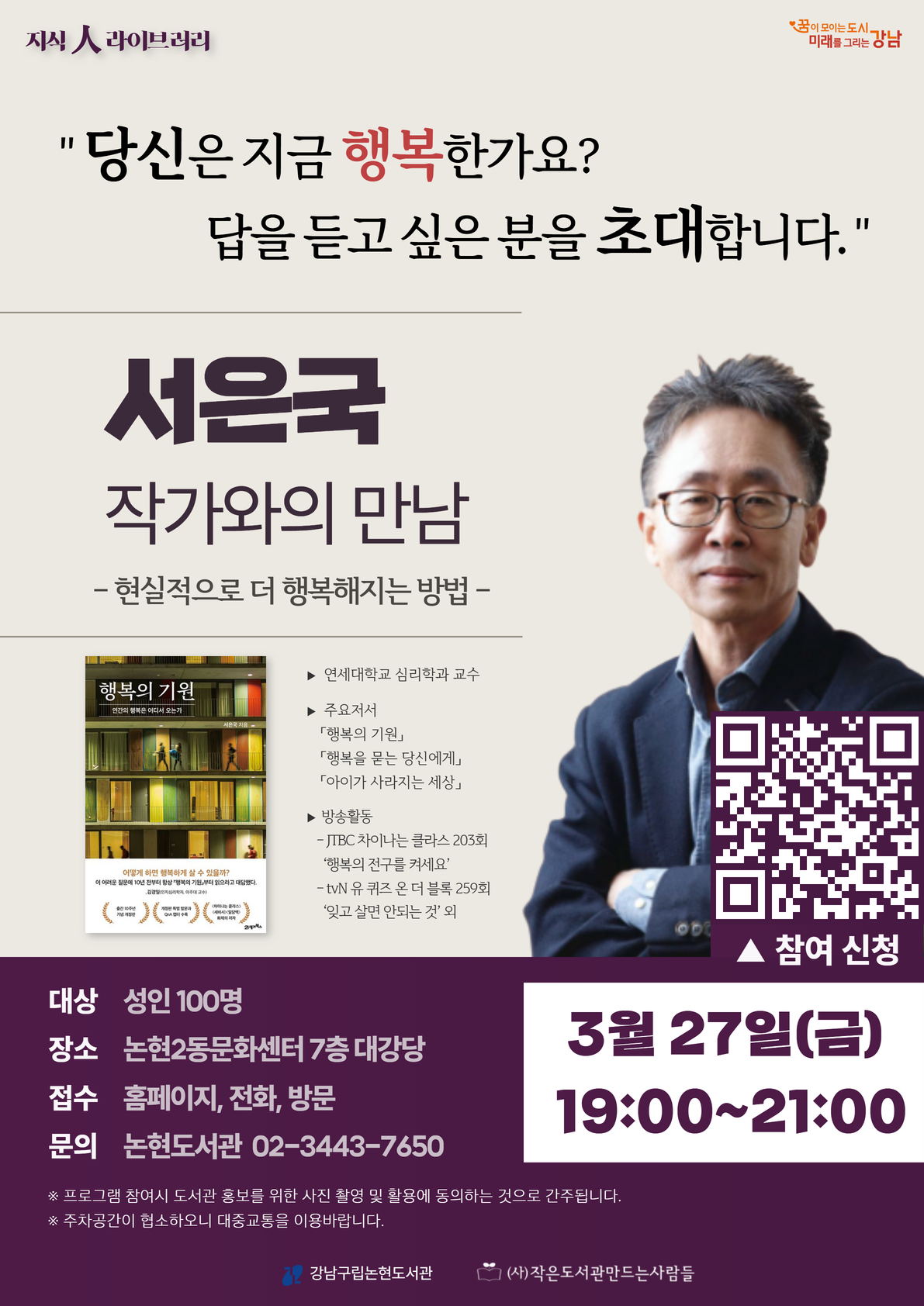 [지식人라이브러리] 서은국 작가와의 만남 : 현실적으로 더 행복해지는 방법