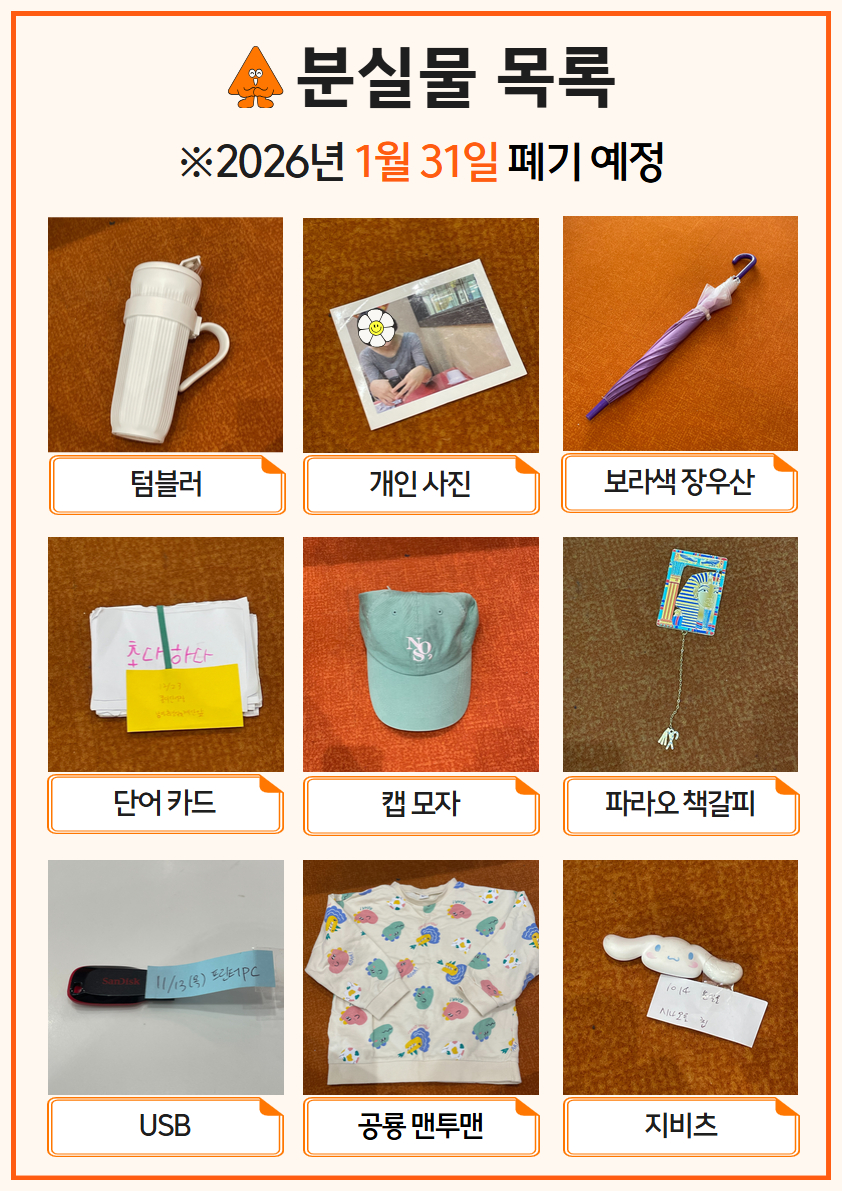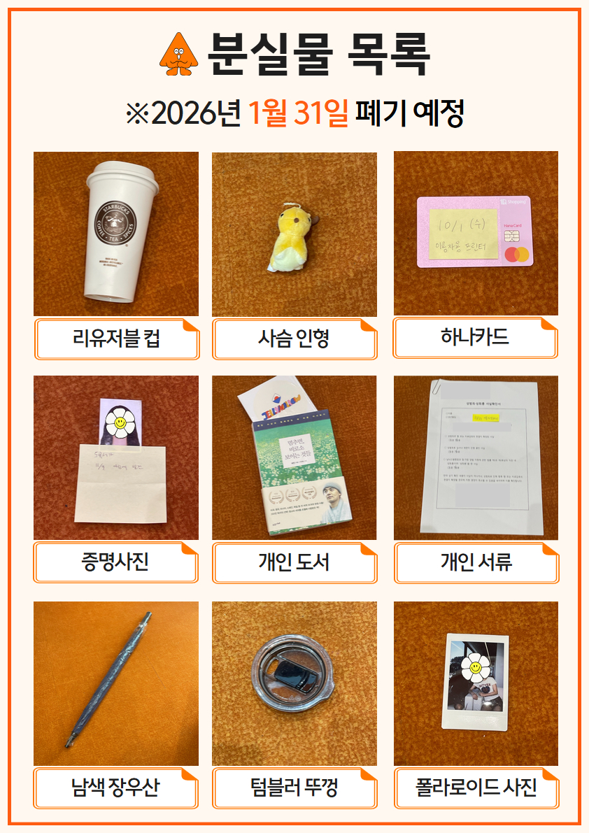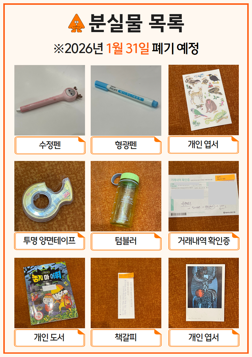 논현문화마루도서관에서 아래 분실물들을 보관하고 있습니다.
