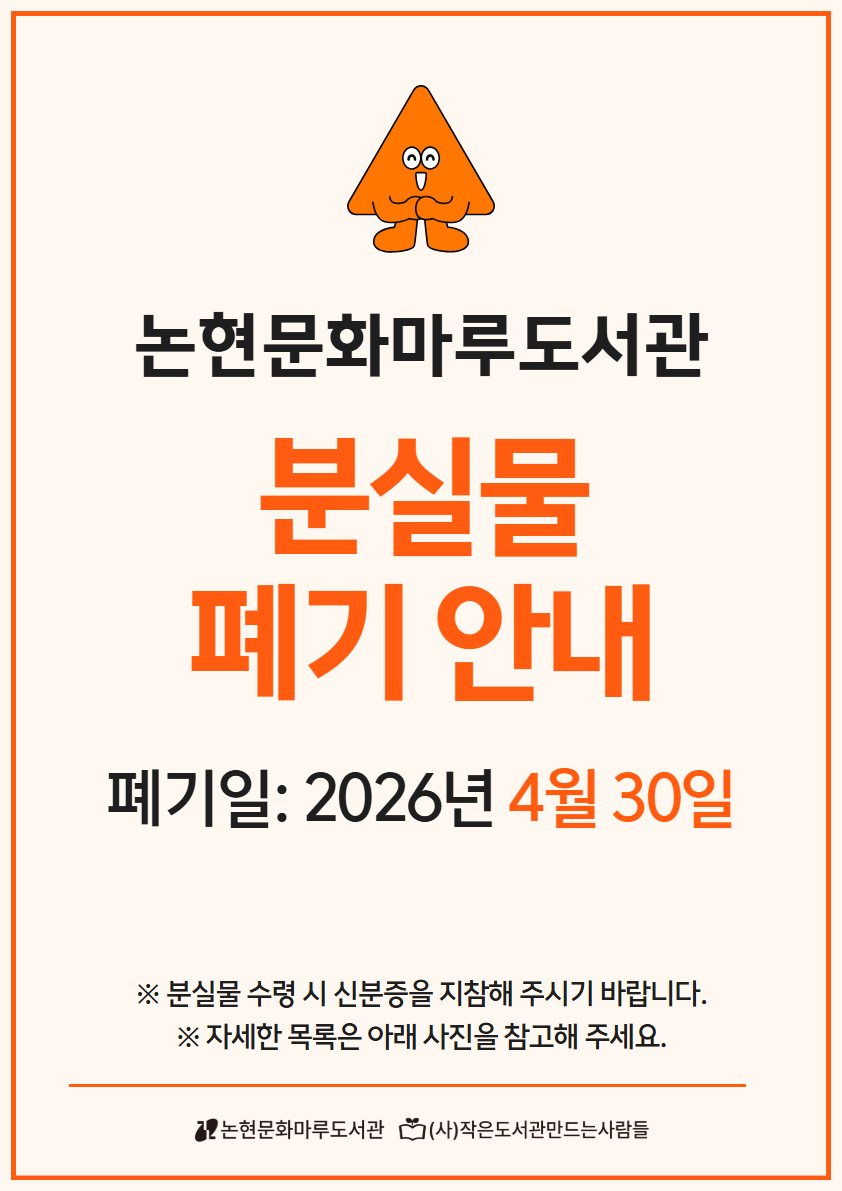 분실물을 수령하실 경우 신분증을 지참하여 도서관에 방문해 주시기 바랍니다.