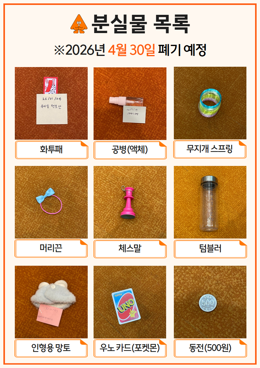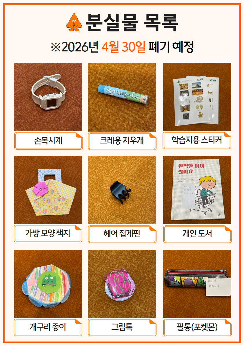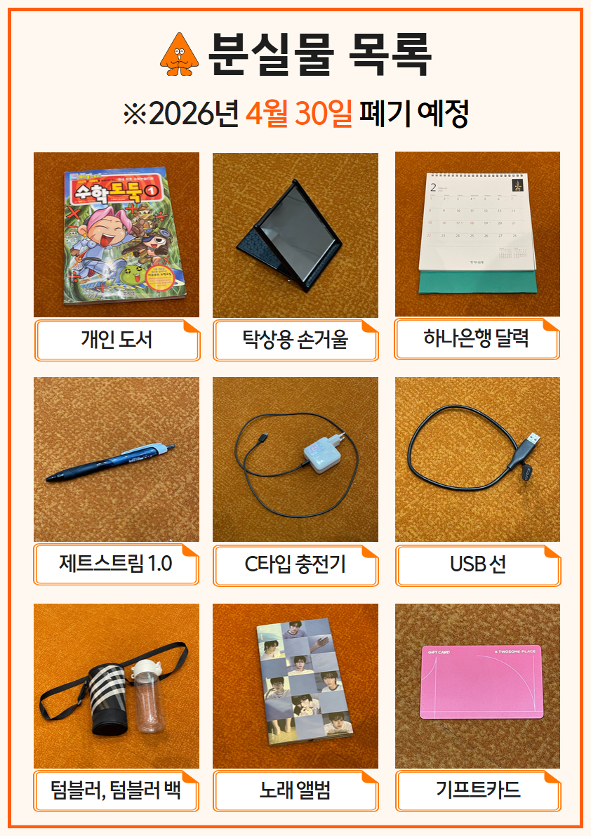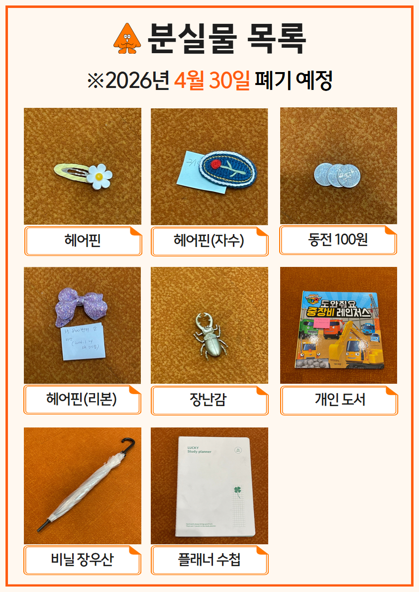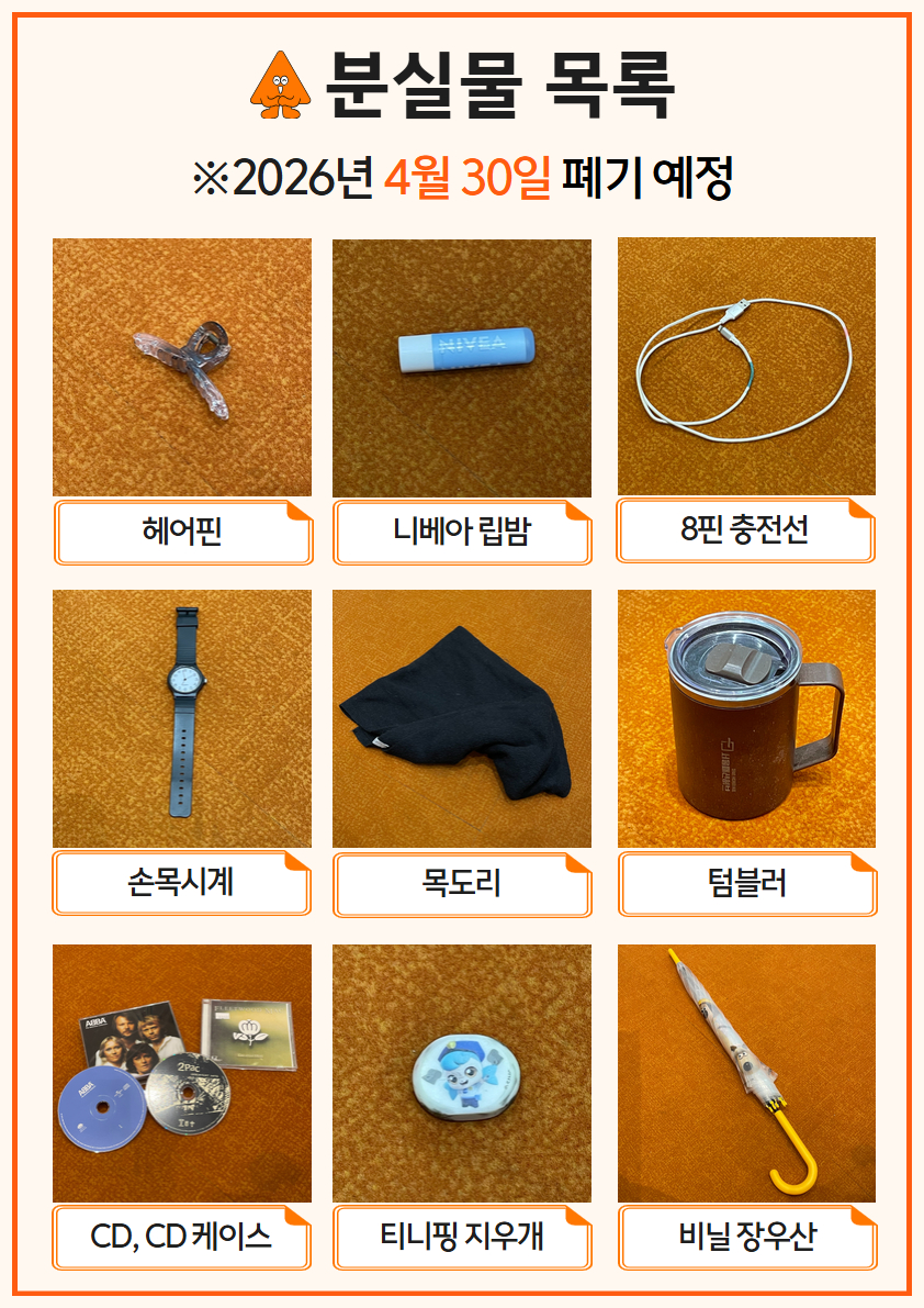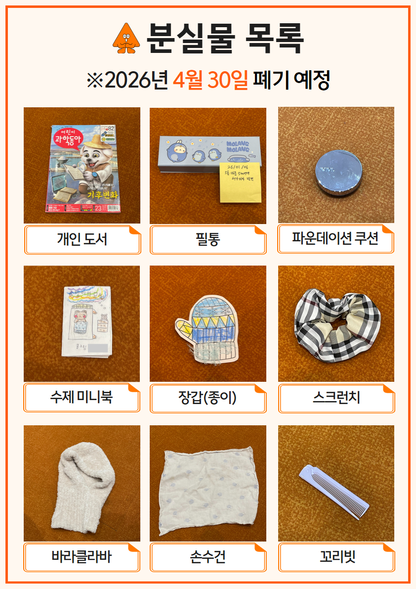 논현문화마루도서관에서 아래 분실물들을 보관하고 있습니다.