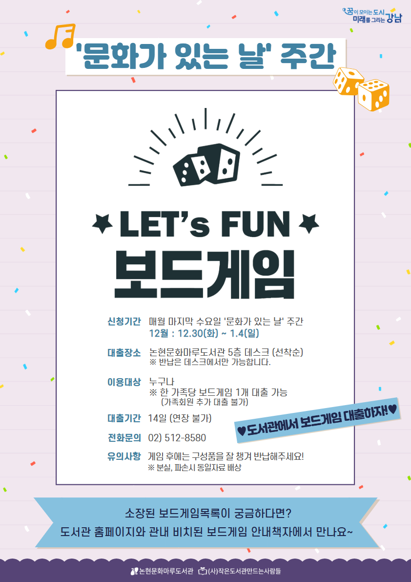 [12월] Let's FUN! 보드게임 (도서관에서 보드게임 대출하자!)