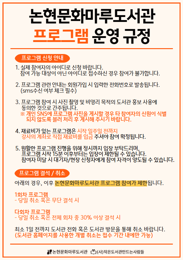 | 행사장소 | 논현문화마루도서관 5층 프로그램실 |