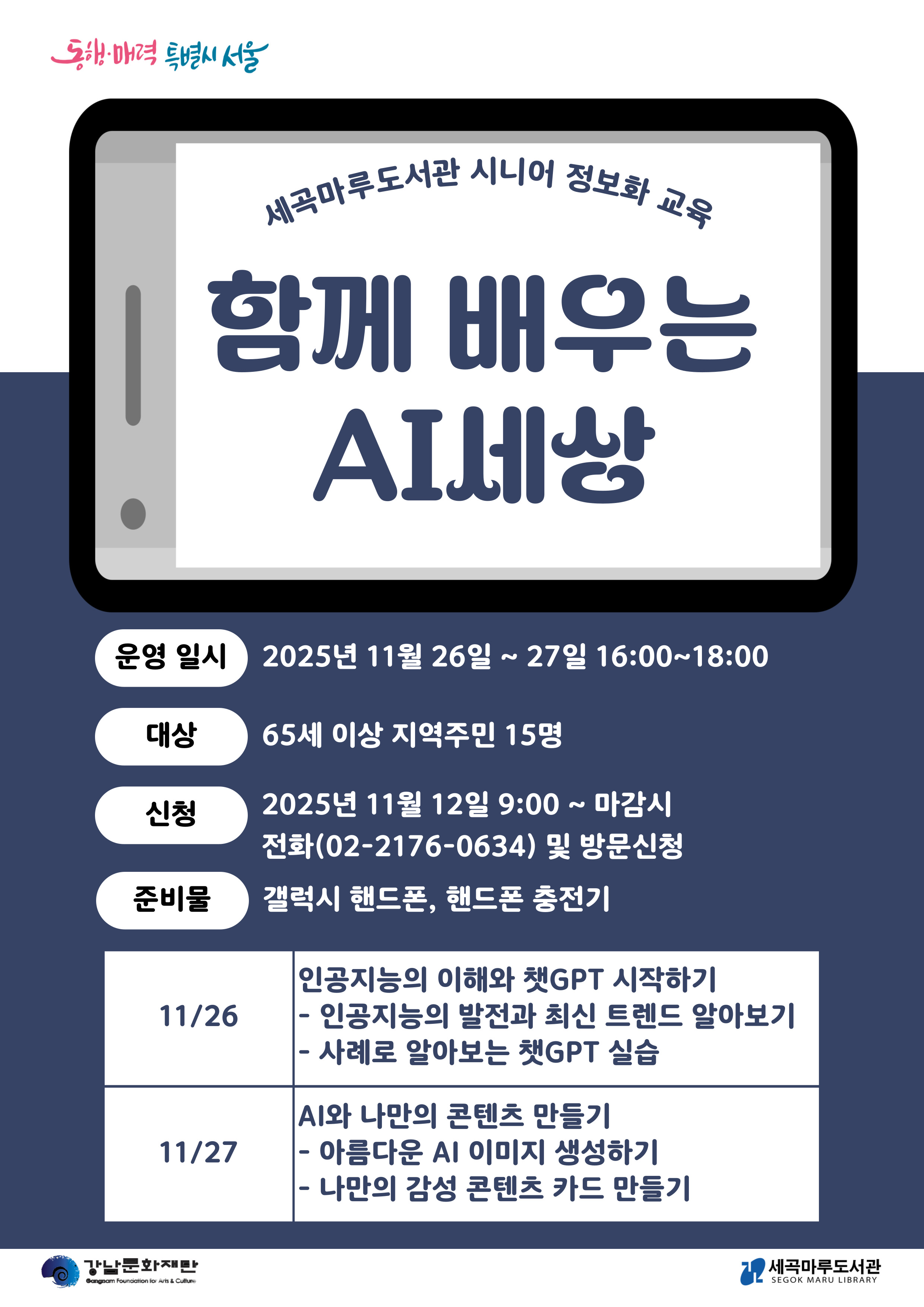 세곡마루도서관 시니어 정보화 교육 함께 배우는 AI세상