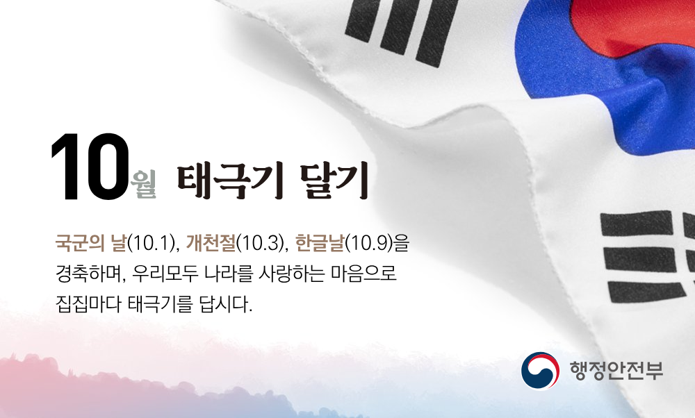 다가오는 10월 1일 국군의 날, 10월 3일 개천절, 10월 9일은 한글날입니다.