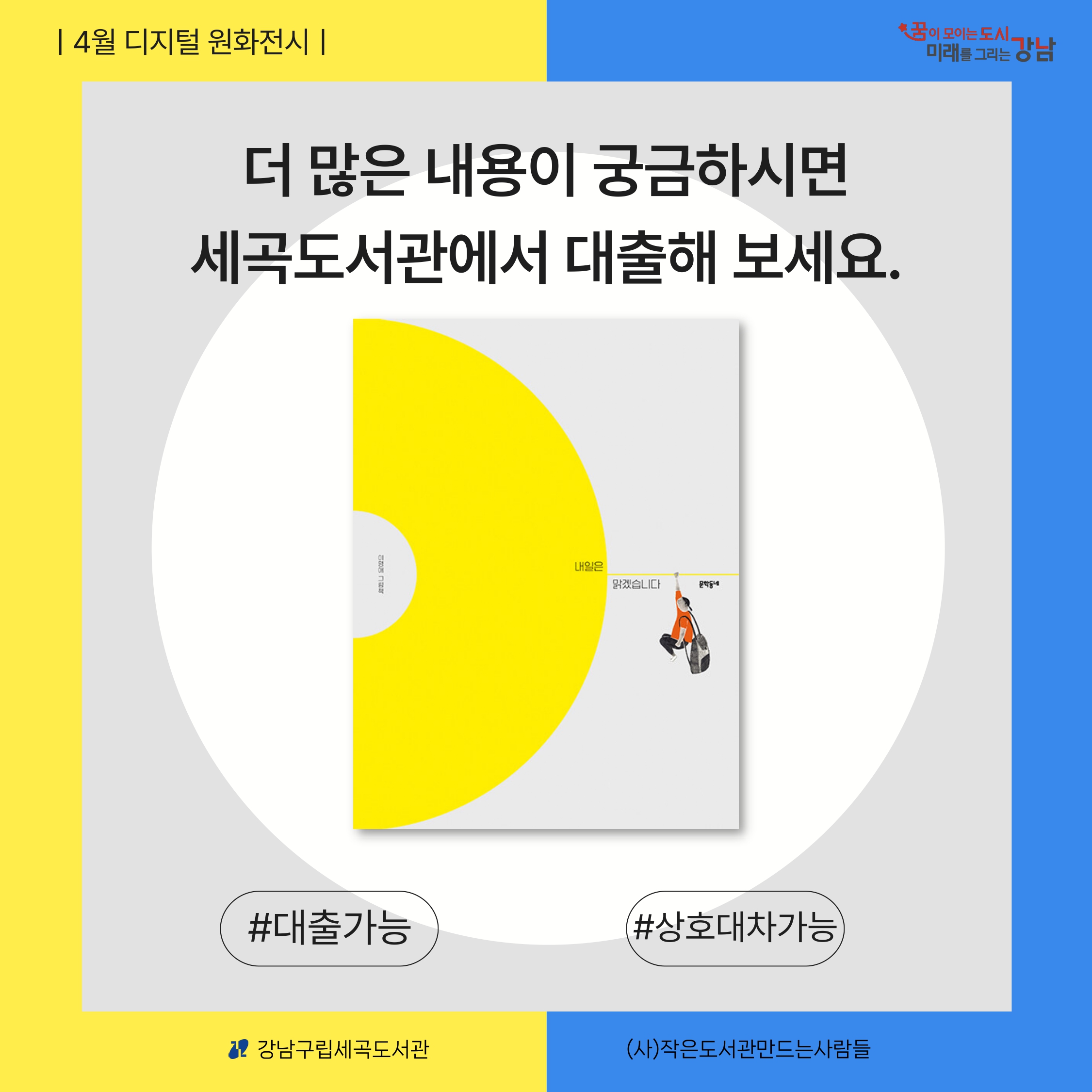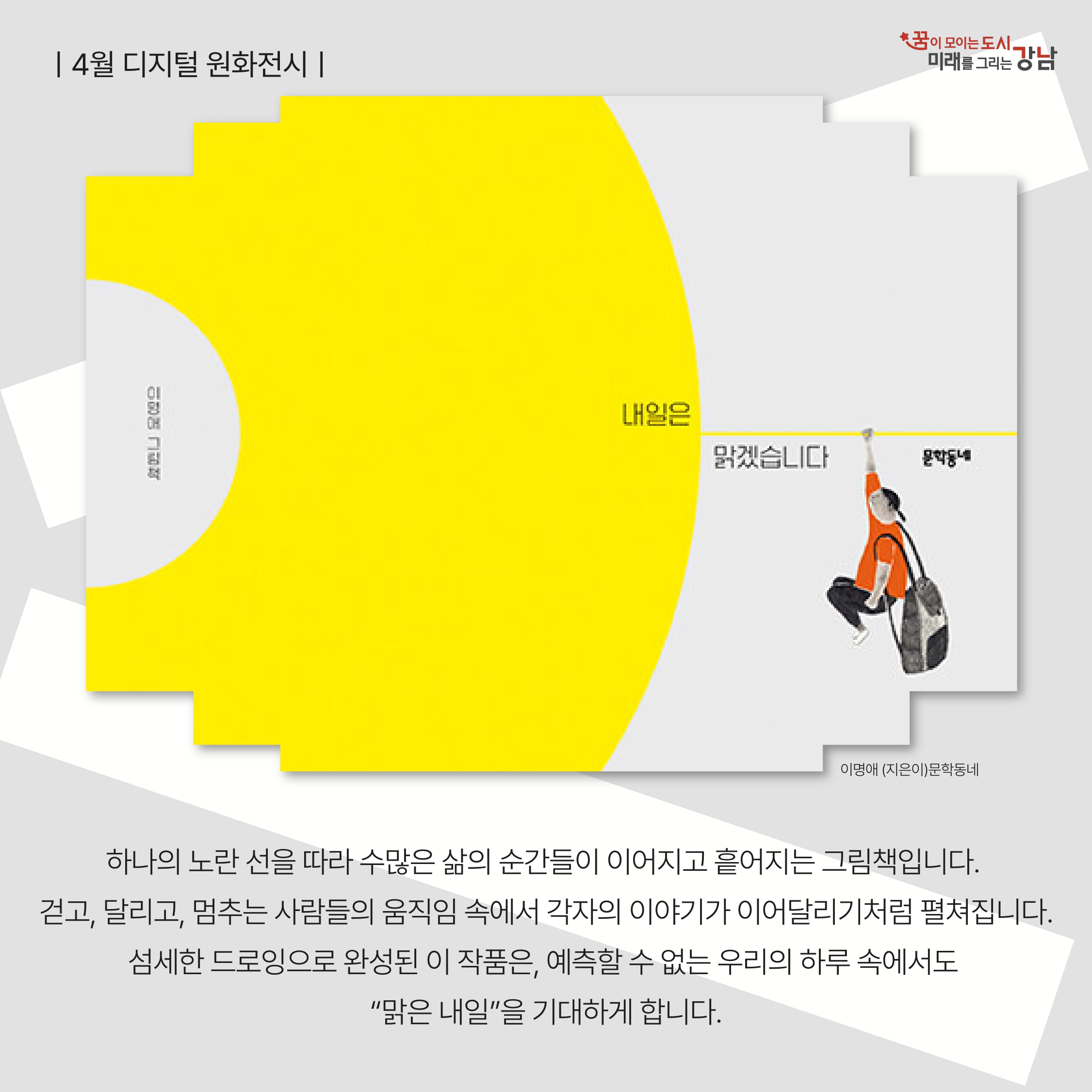 세곡도서관 2026년 4월 한달동안 진행하는 디지털 원화전시를 소개합니다.