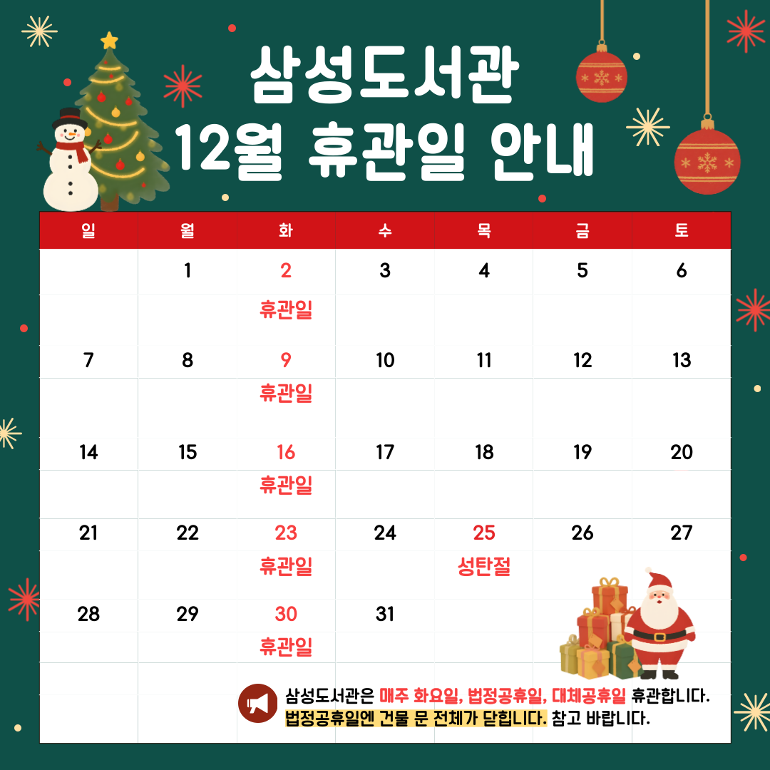 삼성도서관 12월 휴관일 안내