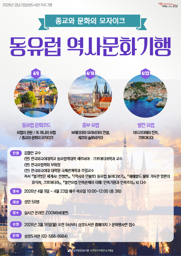 행사명 삼성 [2026년 삼성도서관 프로그램] 종교와 문화의 모자이크, 동유럽 역사문화기행