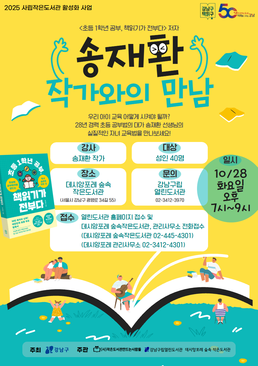 행사명 | 열린 [대면][2025사립작은도서관활성화사업] 초등 1학년 공부 책읽기가 전부다 : 송재환 작가와의 만남 |