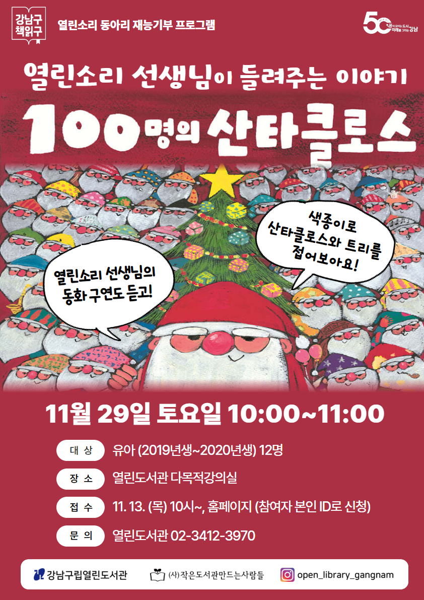| 행사명 | 열린 [대면] 열린소리 선생님이 들려주는 <100명의 산타클로스> 이야기 |