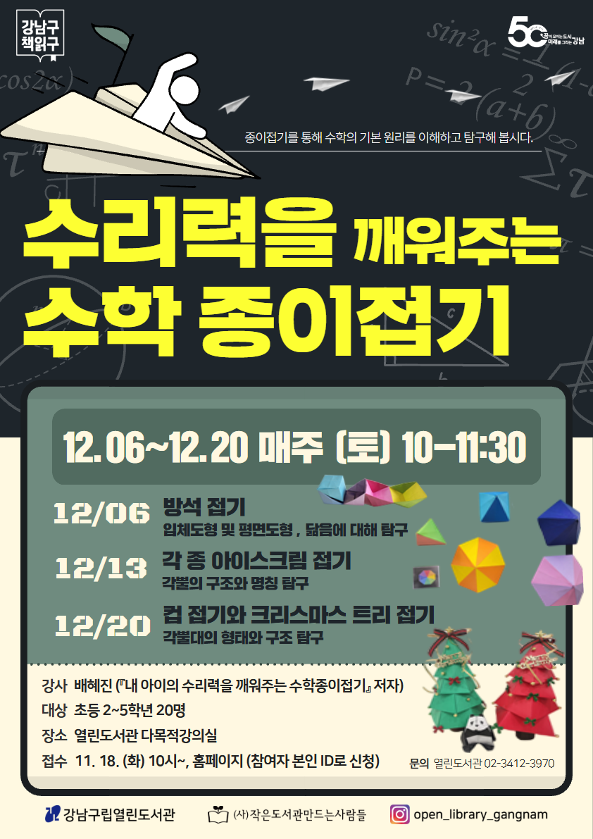 | 행사명 | 열린 [대면] 수리력을 깨워주는 수학 종이접기 |