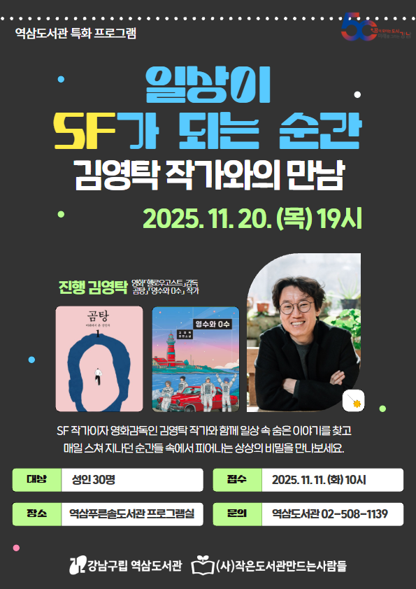 | 행사명 | 역삼 [성인-대면] 일상이 SF가 되는 순간 : 김영탁 작가와의 만남 |