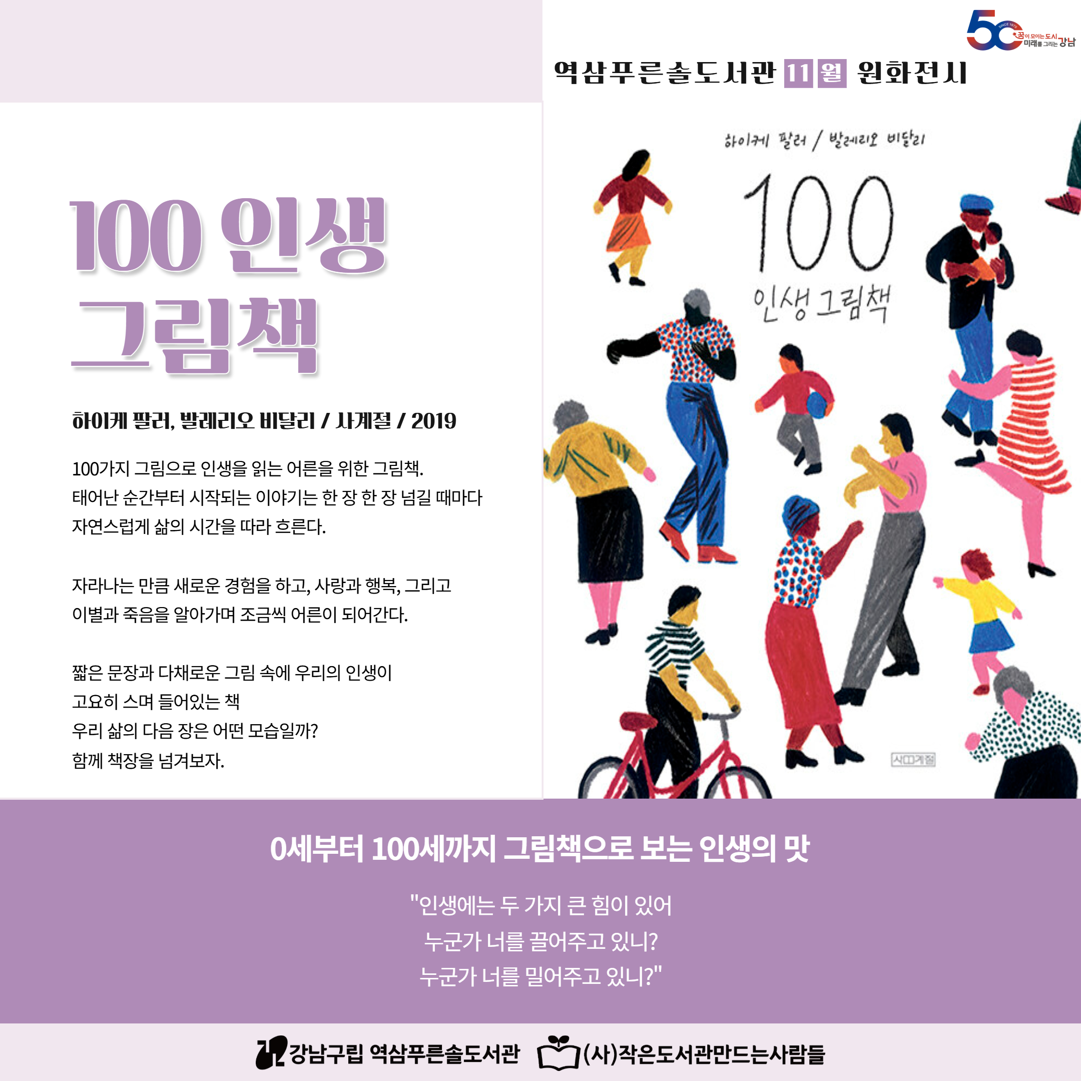 하이케 팔러, 발레리오 비달리 / 사계절 / 2019 100가지 그림으로 인생을 읽는 어른을 위한 그림책. 태어난 순간부터 시작되는 이야기는 한 장 한 장 넘길 때마다 자연스럽게 삶의 시간을 따라 흐른다. 자라나는 만큼 새로운 경험을 하고, 사랑과 행복, 그리고 이별과 죽음을 알아가며 조금씩 어른이 되어간다. 짧은 문장과 다채로운 그림 속에 우리의 인생이 고요히 스며 들어있는 책 우리 삶의 다음 장은 어떤 모습일까? 함께 책장을 넘겨보자. "인생에는 두 가지 큰 힘이 있어 누군가 너를 끌어주고 있니? 누군가 너를 밀어주고 있니?" |